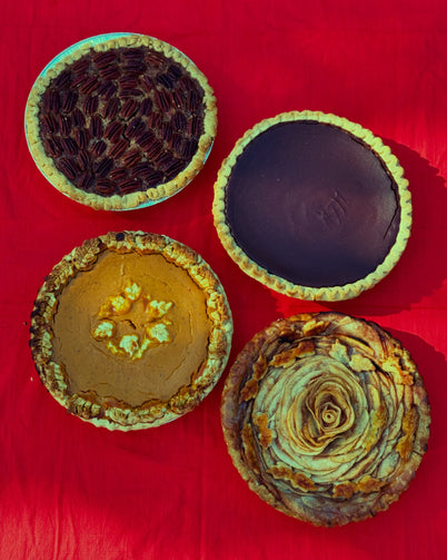 All pies are large 9-10 inch and in a 2 inches deep dish (about a 1 1/2 pie filling in each pie). All pies are made fresh and from scratch from our own tried and true recipes.